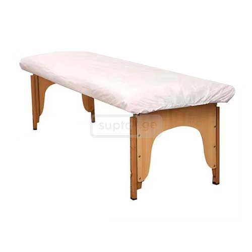 Medical bed sheet is made of white fiber fabric material, has rubbers and easily fits the medical bed.