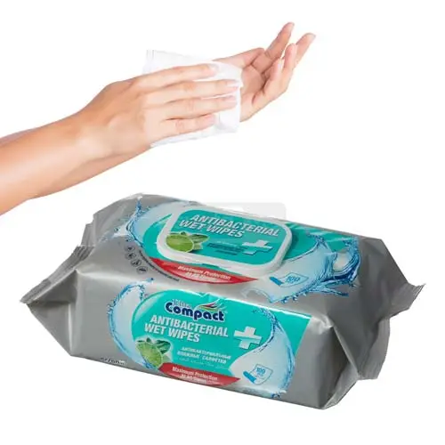 ანტიბაქტერიული ხელსახოცი COMPACT იდეალურად წმენდს და იცავს ხელებს სხვადასხვა მიკრობებისგან, ნებისმიერ დროს და ნებისმიერ ადგილას ანადგურებს 99,9% ბაქტერიებს.
