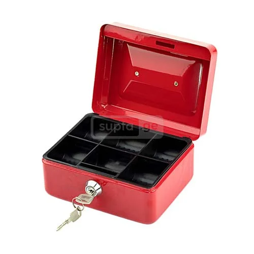პატარა ზომის მეტალის ქეშბოქსი გასაღებით.