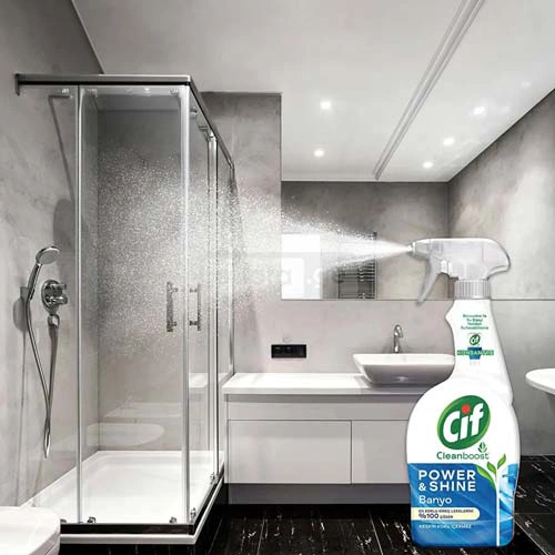 CIF სპრეი გამოიყენება სააბაზანო ზედაპირების გასაწმენდად, 100%-ით აშორებს კირისა და საპნის ნალექებს. გამოიყენება კერამიკის, ქრომის, მინანქრის, პლასტმასის და უჟანგავი ფოლადისთვის. არ ტოვებს ლაქებს და არ აქვს ძლიერი სუნი.
