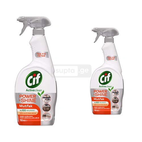 CIF სპრეი გამოიყენება სამზარეულოს ზედაპირების გასაწმენდად, ეფექტურად აშორებს ცხიმებსა და ჭუჭყს. შეიცავს 100%-ით ნატურალურ საწმენდ ინგრედიენტებს და აქვს ბიოდეგრადირებადი ფორმულა.