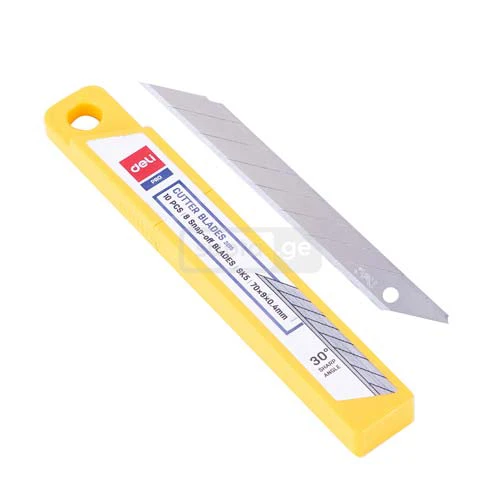 ბრენდი: DELI პროდუქტის ტიპი: საკანცელარიო დანის პირი მასალა: მეტალი ზომა: სიგანე 9 მმ, სიგრძე 70 მმ, სისქე 0.4 მმ  შეკვრაში: 10ც მწარმოებელი ქვეყანა: ჩინეთი