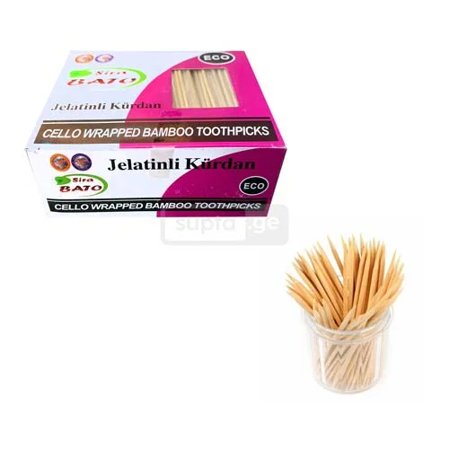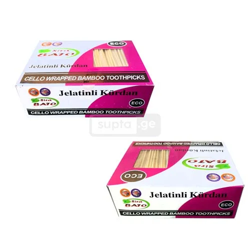 პროდუქტის ტიპი: ინდივიდუალურად შეფუთული კბილის ჩხირები მასალა: ხე კოლოფში: 500 ც შეფუთვა: პოლიეთილენი მწარმოებელი ქვეყანა: თურქეთი