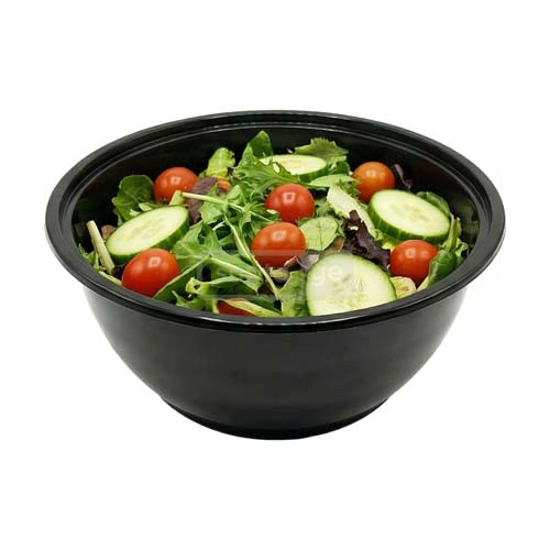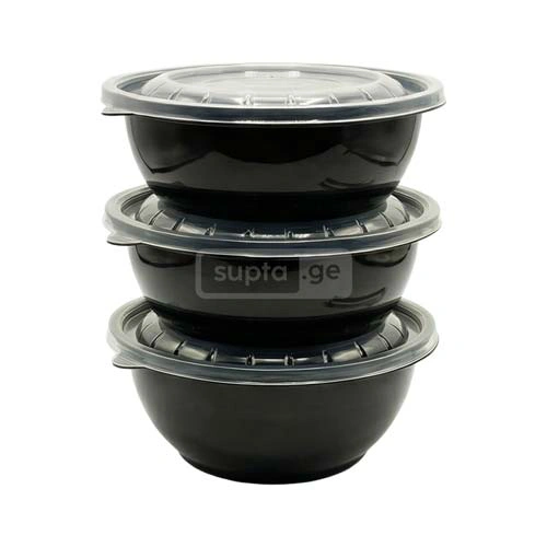 ერთჯერადი პლასტმასის მრგვალი შავი კონტეინერი თავსახურით 1000მლ 1*100ც