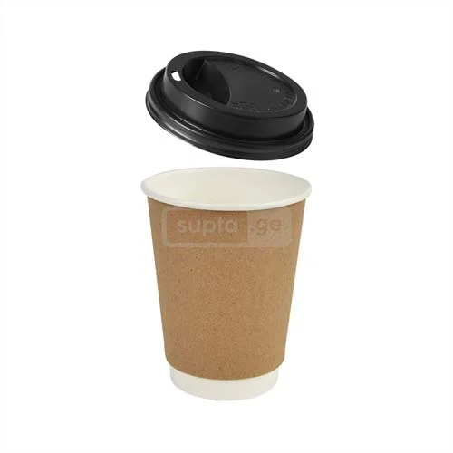 მუყაოს ერთჯერადი ჭიქის შავი თავსახური 14oz (ლატე) 1*100ც