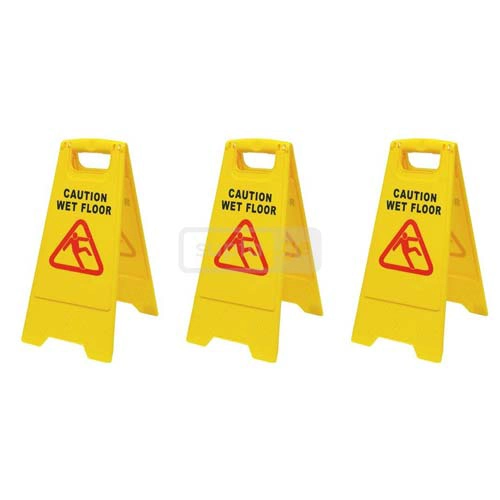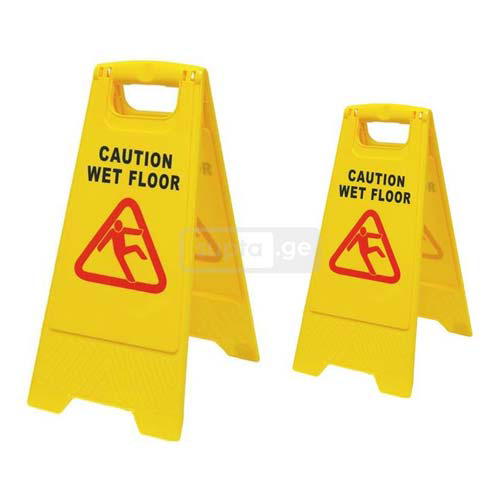 გამაფრთხილებელი ნიშანი Wet Floor - სველი იატაკი გამოიყენება სველ ან გაპრიალებულ იატაკებზე, მარტივი კონსტრუქციის მეშვეობით იგი ადვილად იხსნება და იკეცება.