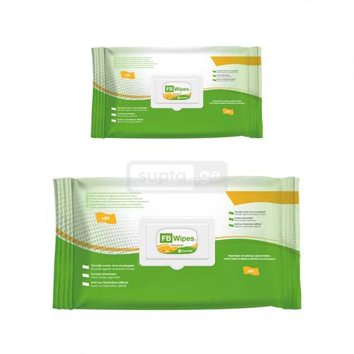 FB WIPES არის ზედაპირების, აპარატურის, დანადგარების საწმენდი სადეზინფექციო სალფეტკები, რომელთა გამოყენებაც შესაძლებელია, როგორც კვების ობიექტებსა და მრეწველობაში, ასევე სამედიცინო დაწესებულებებში.