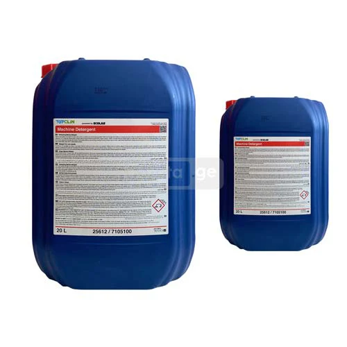Topclin Dishmachine Detergent კონცენტრირებული სარეცხი საშუალება ინდუსტრიული ჭურჭლის სარეცხი მანქანებისთვის, აშორებს ლაქებს და ჭუჭყს, ანიჭებს ჭურჭელს მაქსიმალურ სისუფთავესა და სიპრიალეს. გამოიყენება ყველა ტიპის ჭურჭელზე - ჭიქებზე, მინის ჭურჭელზე, უჟანგავ ფოლადზე და პლასტმასზე.